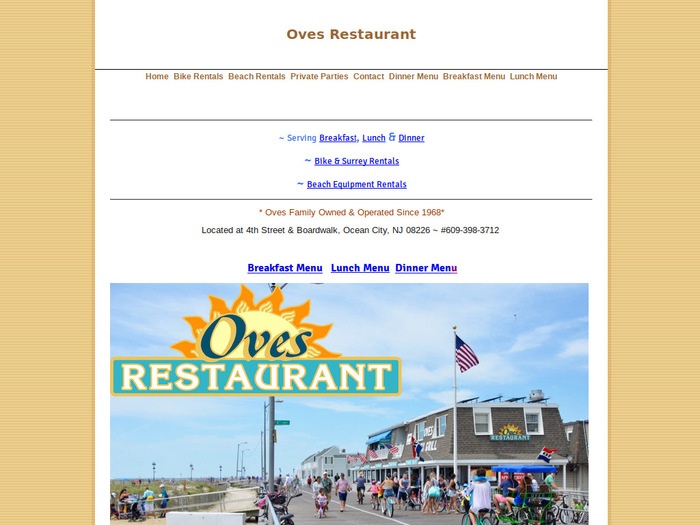 ![]() | Oves Restaurant & Bike & Beach Rentals4th Street & BoardwalkOcean City (609) 398-3712 |